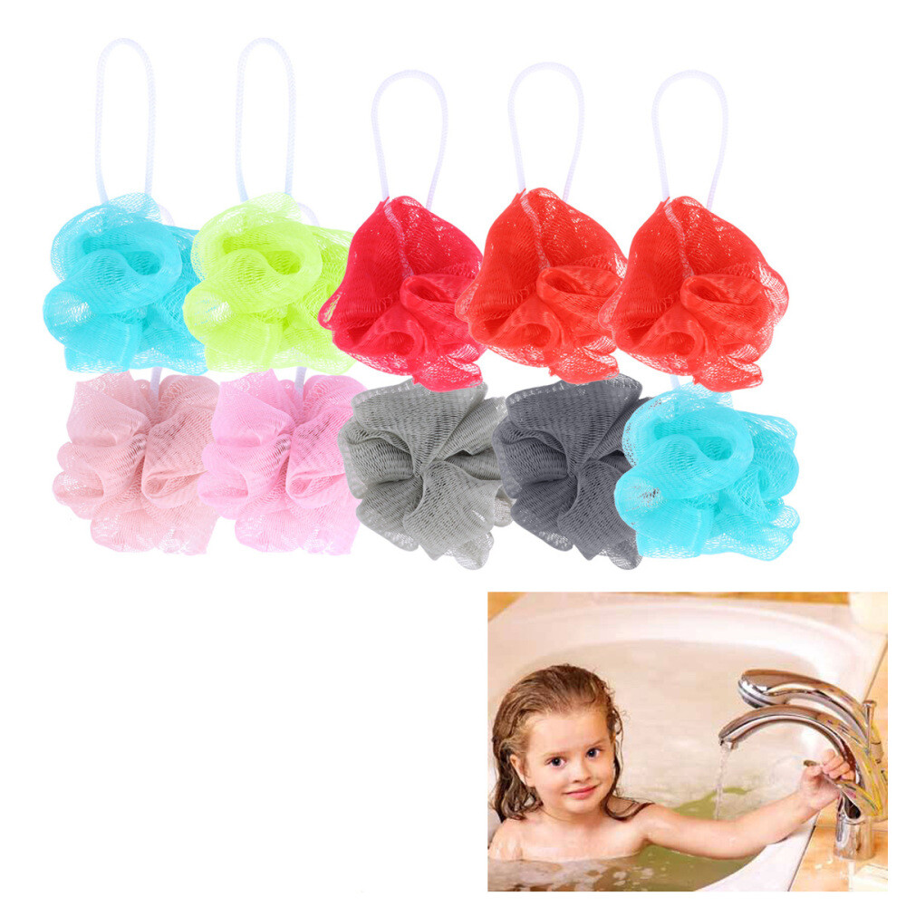 10pcs shower scrunchie shower sponge puff pouf Shower Body Scrubber Bath Puff